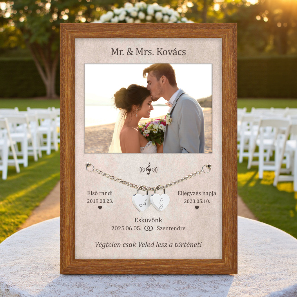A lakat-ceremónia keret nem csak különleges és elegáns, hanem megfizethető emlék, amely a piacon ritkaságnak számít ebben a minőségben és személyre szabhatóságban.